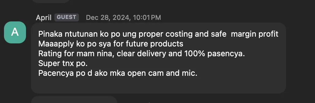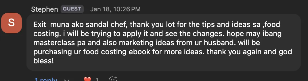 The modules are packed with years of proven strategies that helped countless local foodpreneurs. Tapos may bonuses ka pang Google Sheets template, monthly live Q&A, at mastermind community—lahat kasama na. Honestly, the value you get far exceeds the enrollment fee.