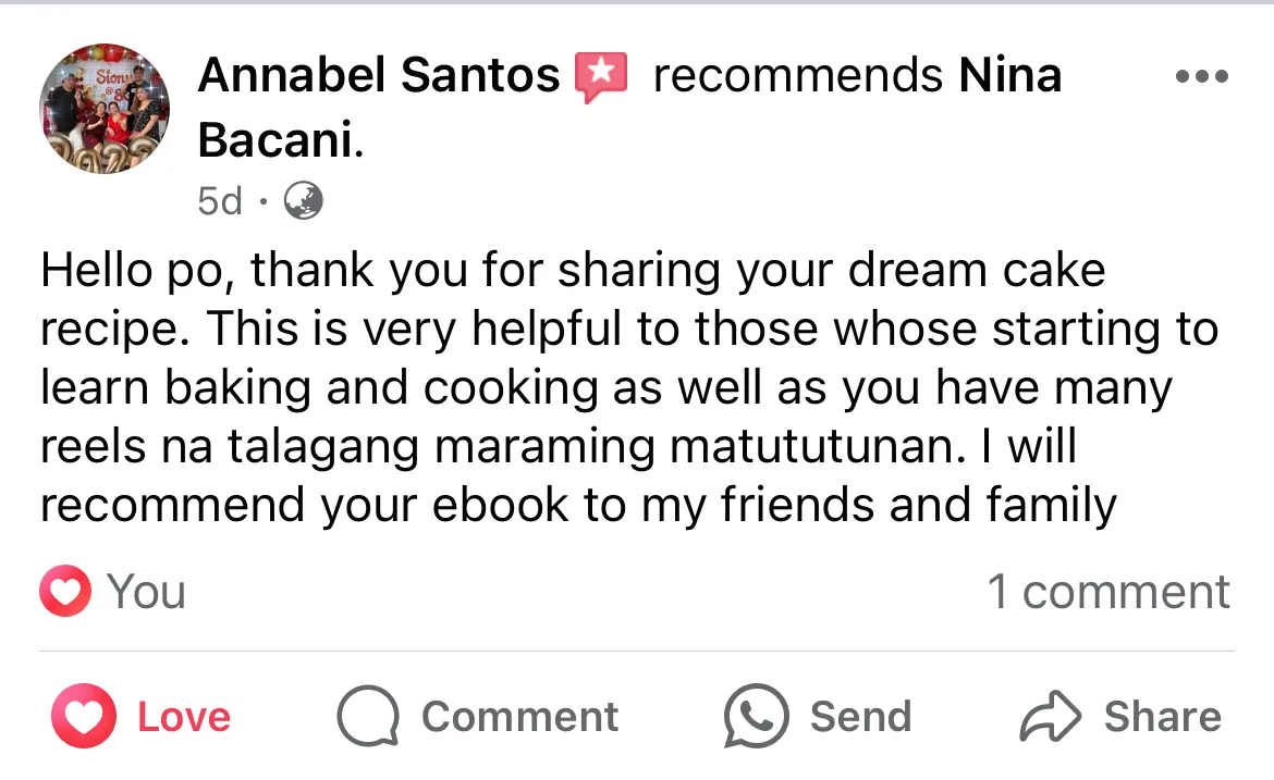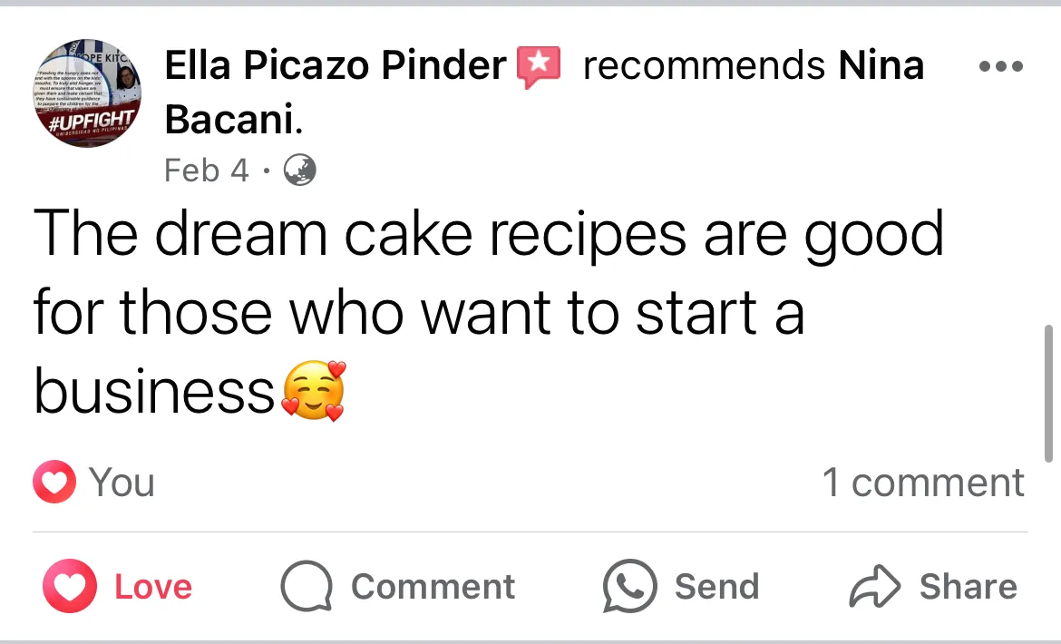 You can use these dream cake recipes to sell online, offer for events, or launch your own tin can cake business. No license required — basta wag lang i-rebrand or resell the eBook itself.